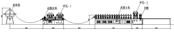 整條生產線由放料系統、沖孔系統、成型系統(焊接技術)、切斷系統、電控系統等部分組成。